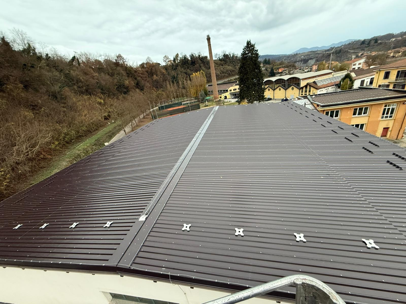 La copertura in lamiera della palestra dell'Istituto Baruffi di Mondovì